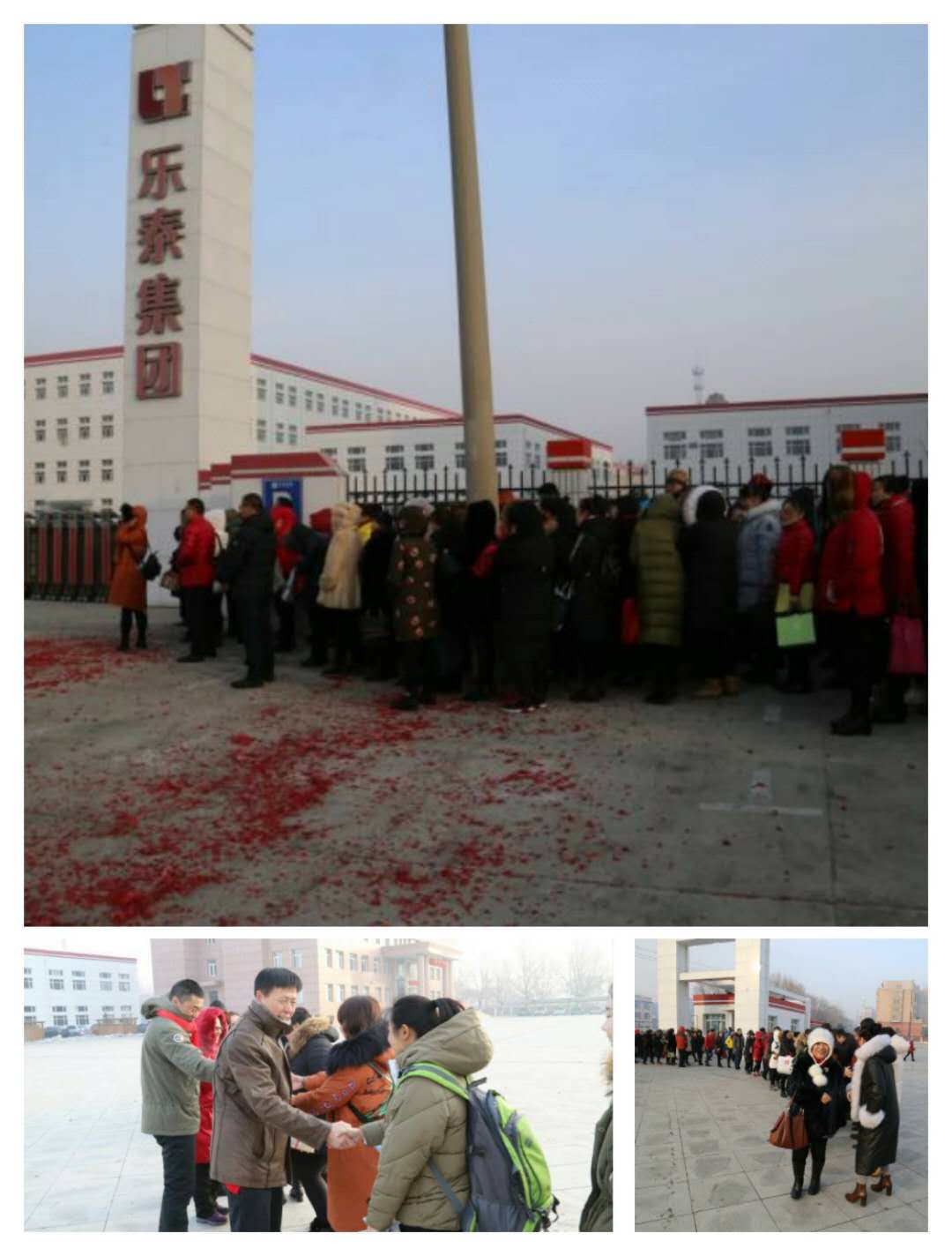 上午7时35分,集团正门鞭炮齐鸣。脚踏满地红彩,家人们一起迎接新年工作的第一天。