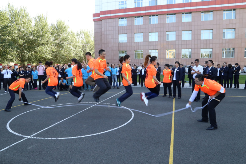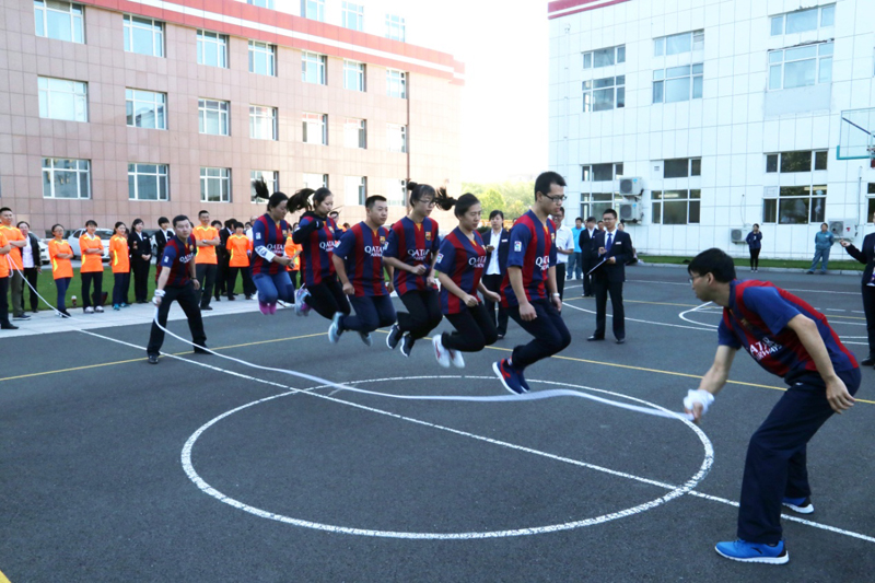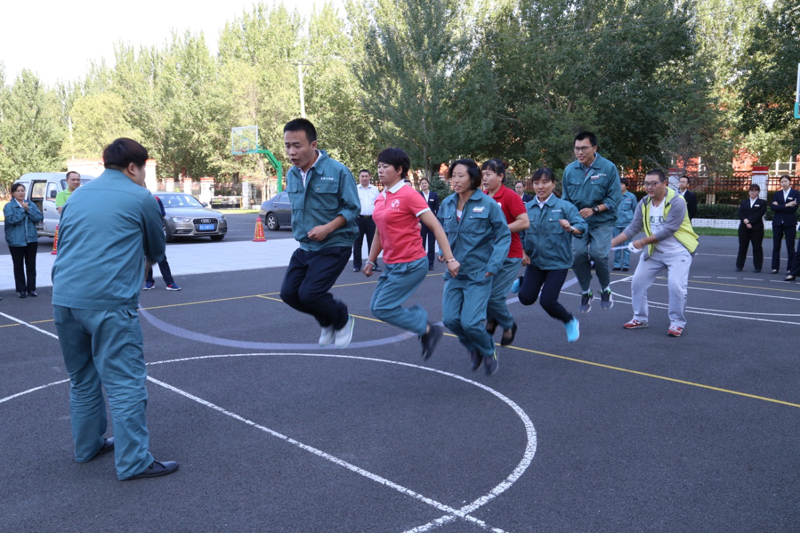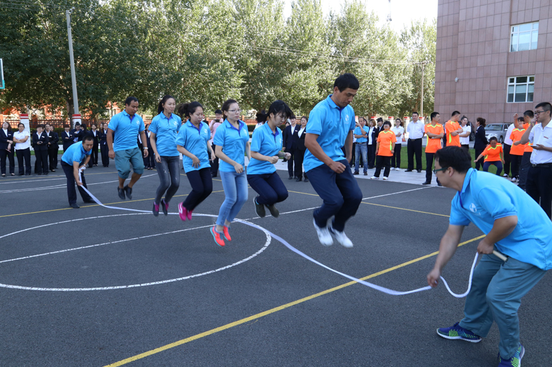 【乐泰讯】为丰富员工业余生活,培养员工拼搏进取精神及团结协作能力,2017年9月25日乐泰集团组织全体员工在排球场开展 “多人定点跳绳”比赛。此次共有4支队伍32名队员参加比赛,每队由2名摇绳队员和6名跳绳队员组成,6名队员在长绳同侧依次排开,共同完成一次性一起跳过绳视为1个计数,1分钟内累计数量最多的队伍获胜。
