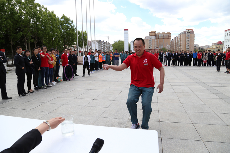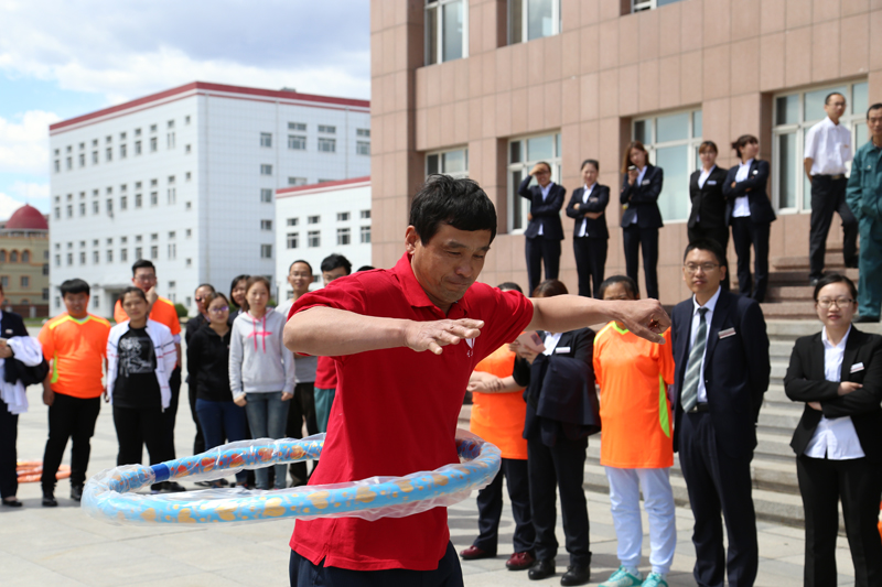比赛开始后,各战队参赛队员旋转呼啦圈过程中回答着企业文化的问题;因为室外风向及风力不同给踢毽子队员们带来了不小的麻烦,也带来了不少笑声;最后队员们用漏水的容器接力运水。场上队员尽量配合、相互鼓励,场外观众情绪热烈的为选手们呐喊助威,气氛活跃,一片欢声笑语。