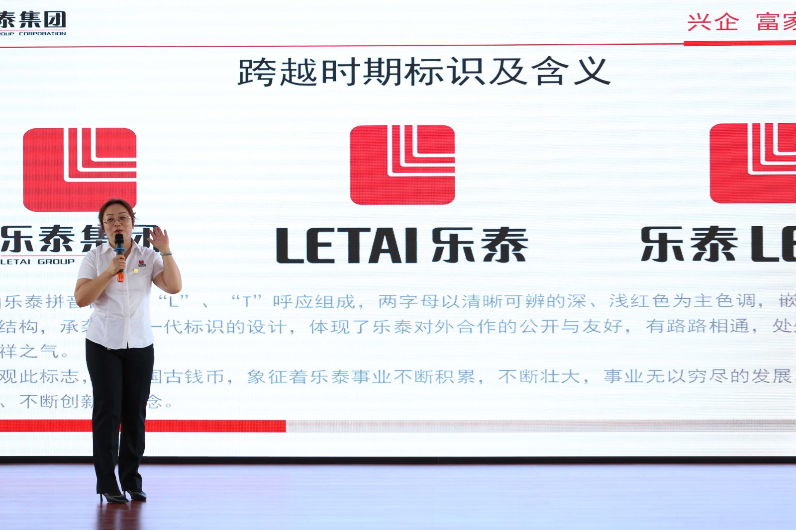 本次大会分为两个会场,主会场16楼,分会场15楼以转播的形式观看并参与互动。由战略发展副总裁马宇辉女士在主会场16楼开启了今天的第一篇章•VI发布会,随着新标识的官宣,乐泰集团正式启用了第三代logo标识,企业形象又上升了一个新的台阶。